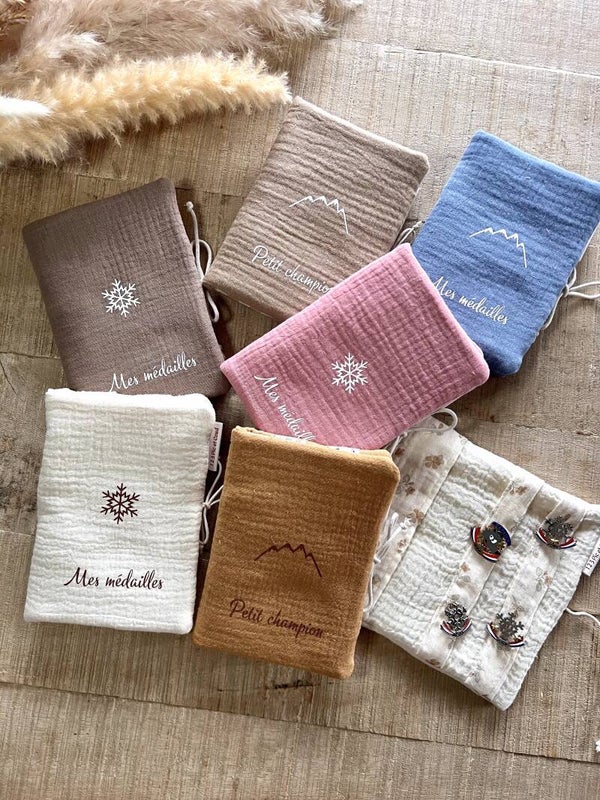 La pochette à médailles de ski, l'écrin parfait pour tous les champions. Conçue pour ranger et protéger avec soin chaque médaille, elle transforme vos souvenirs en un trésor organisé et pratique. Une création fait main, rien que pour vous.