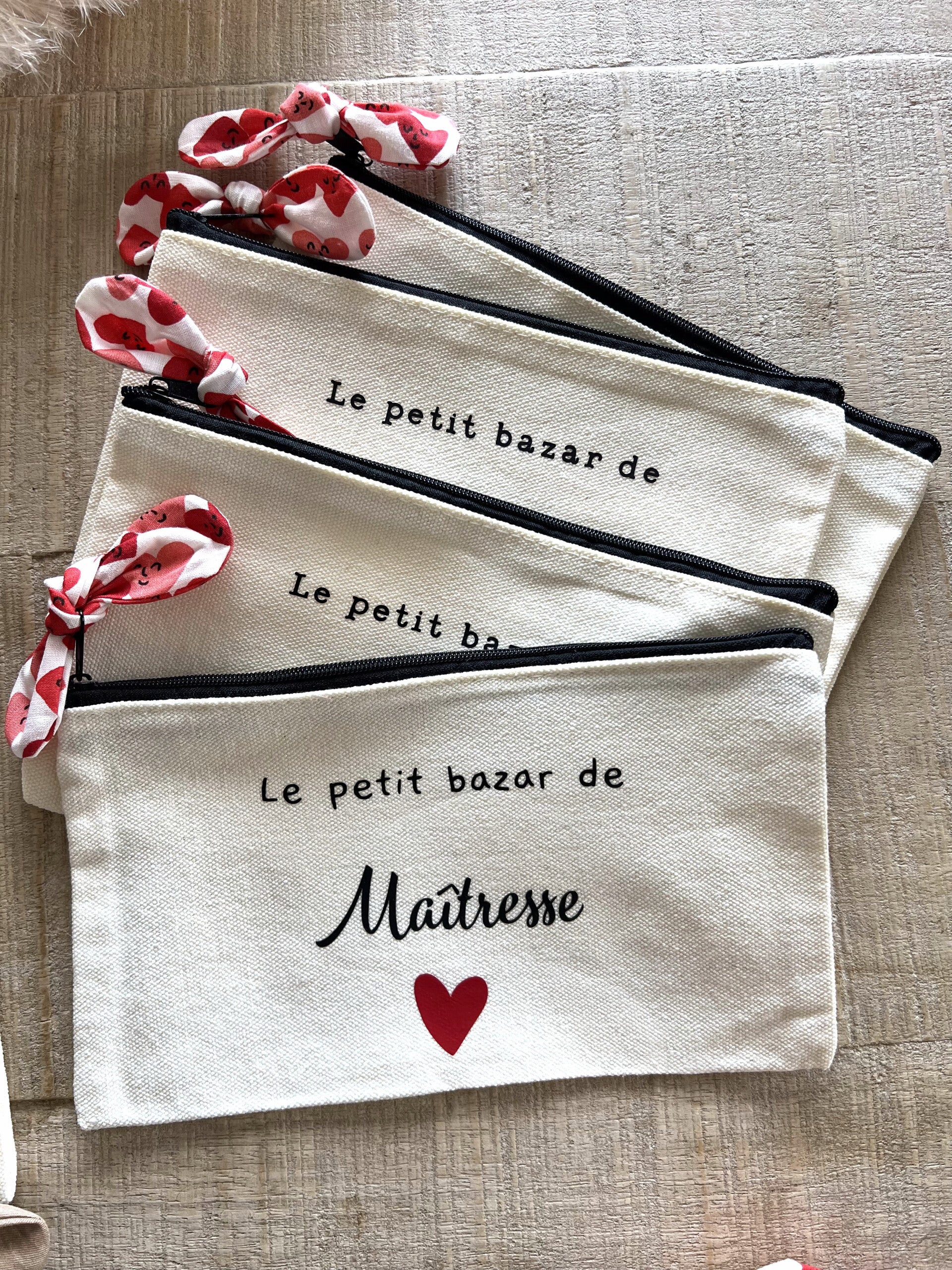 Pour une fin d’année pleine de douceur et de reconnaissance, offrez à la maîtresse une jolie trousse personnalisée, à la fois utile et pleine de sens, que vous pourrez egalement garnir de confiseries.