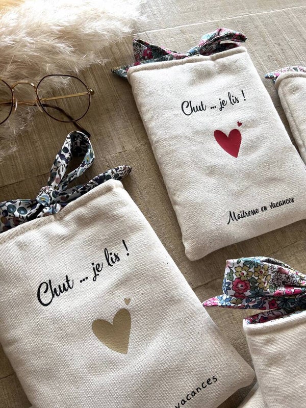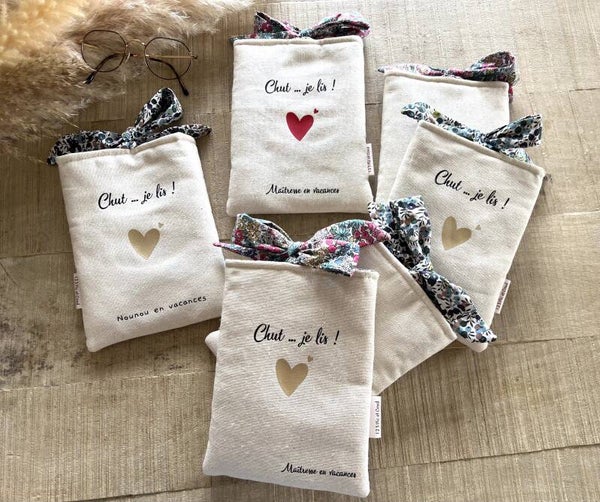 Jolie Pochette " Chut... Je lis " pour protéger les livres lors des déplacements.