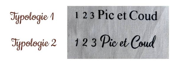 Merci d'indiquer dans le champs Remarque lors de la validation de votre commande le prénom ou mots à personnaliser ainsi que la typologie et la couleur.
