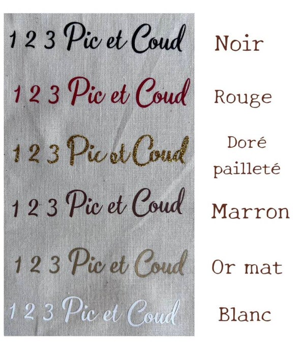 Pour garantir un rendu optimal, les mots trop longs ( 10 caractère maximun ) ne permettent pas de selectionner l'option or pailleté, merci de choisir une autre couleur.