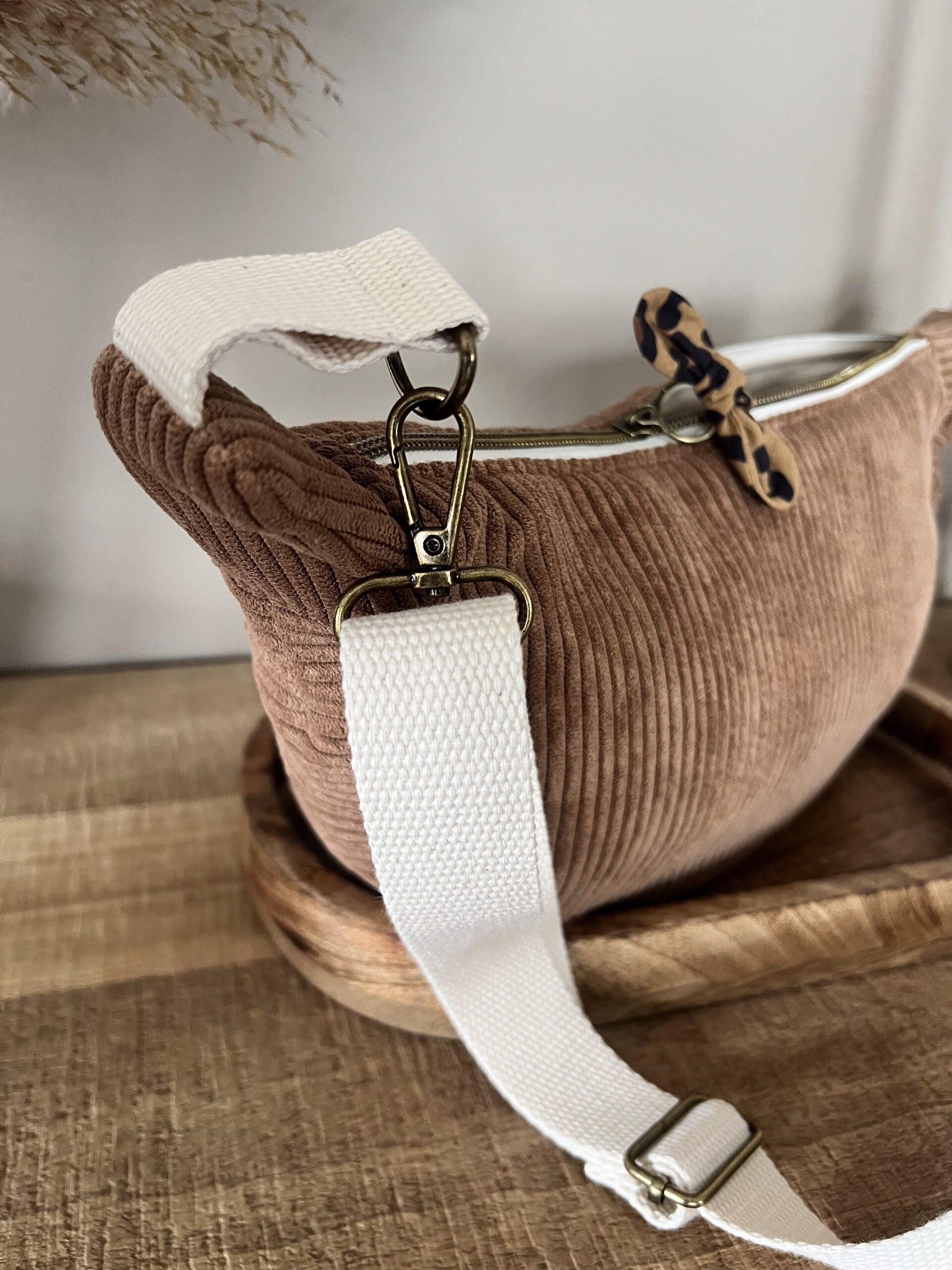 En forme de demi-lune, ce sac est à mi-chemin entre la banane et la besace.